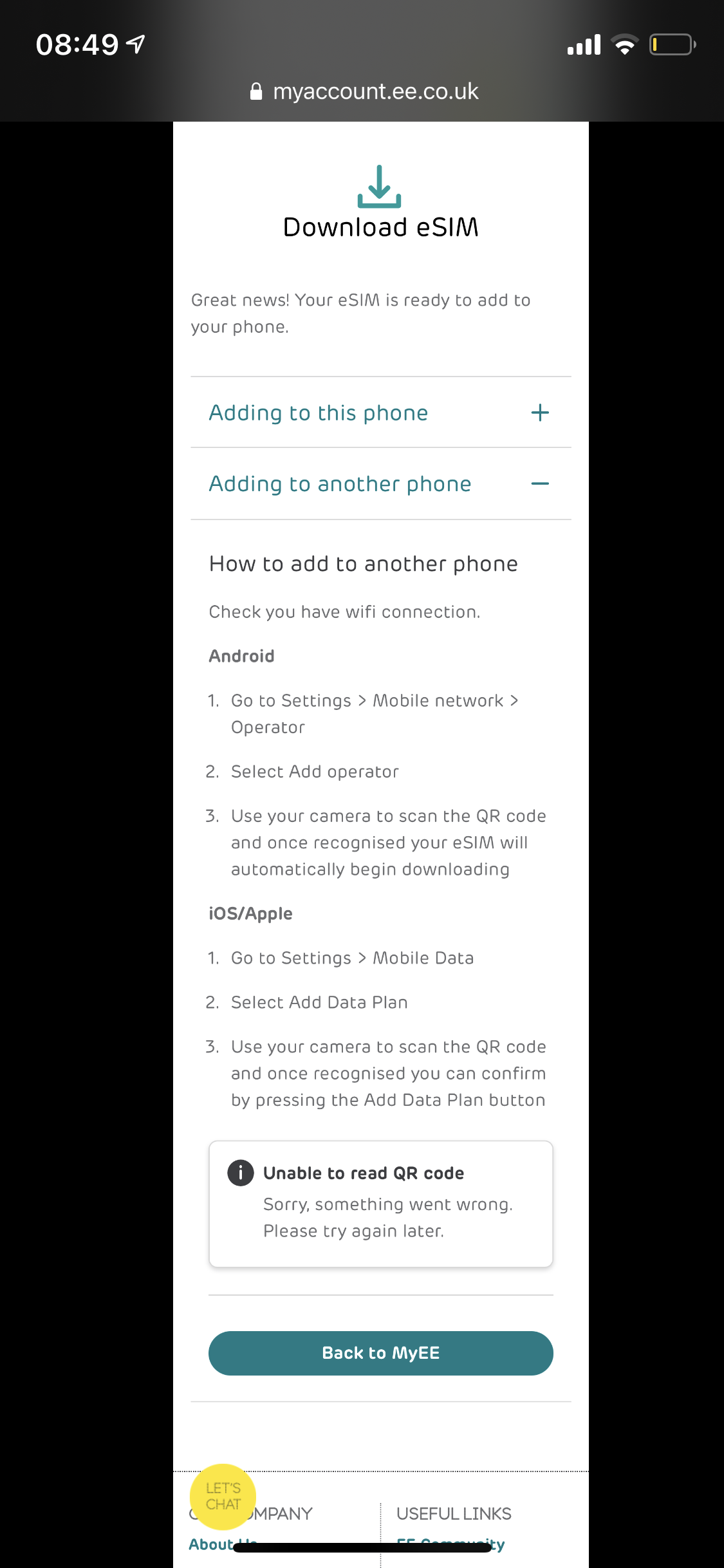 Solved Download Esim Not Working The Ee Community