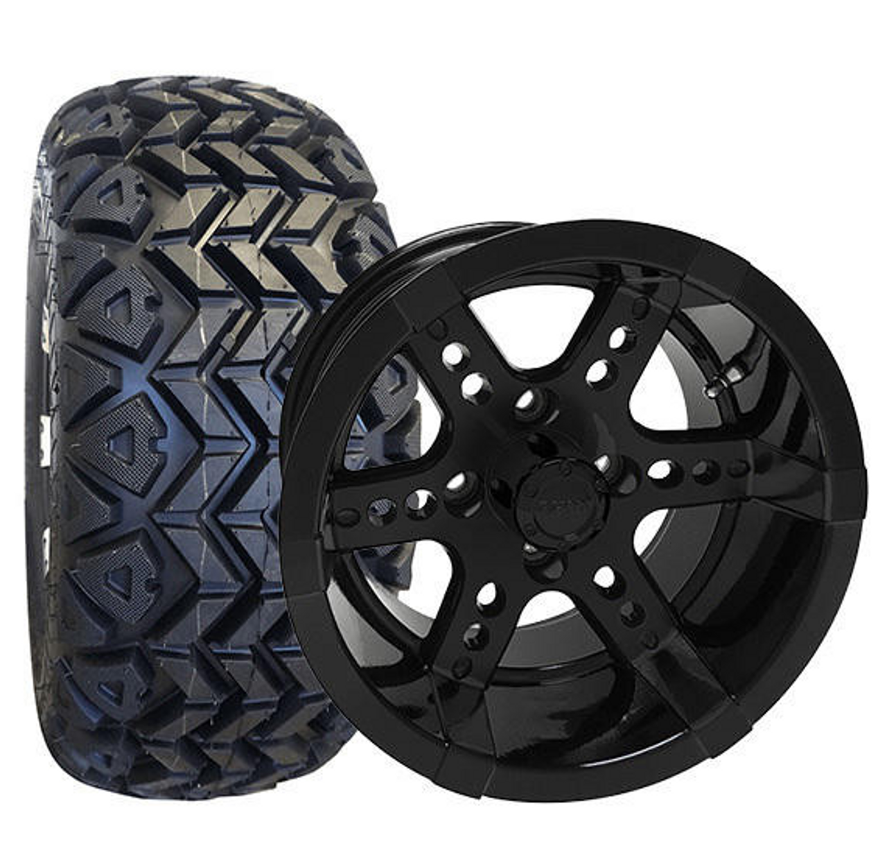 Golf Cart Wheel And Tire Combo 23x10x14 All Terrain Gloss Black Pete S Golf Carts